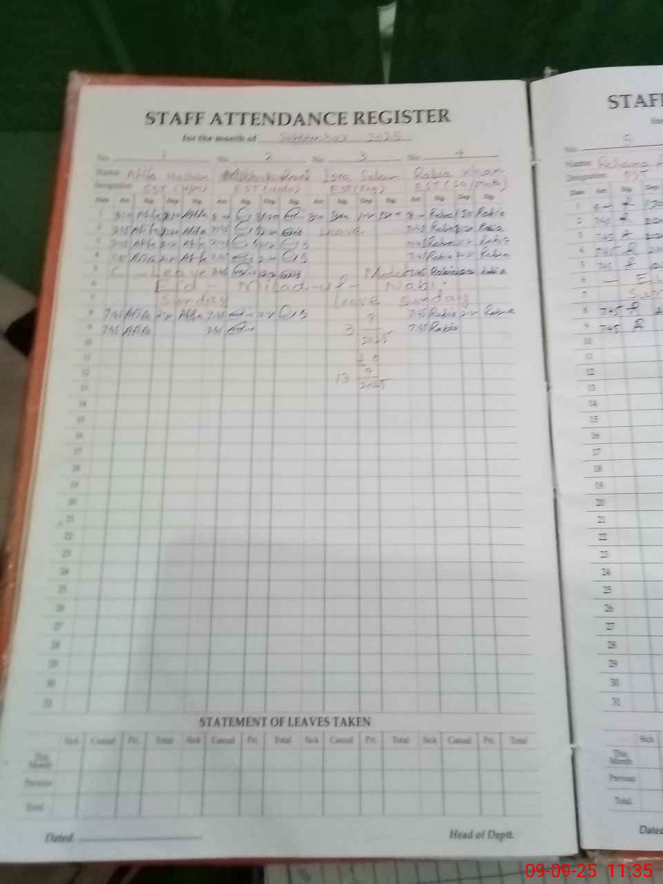 | Leave | Duty | Absent | Maternity | Medical | Ex- Pak |