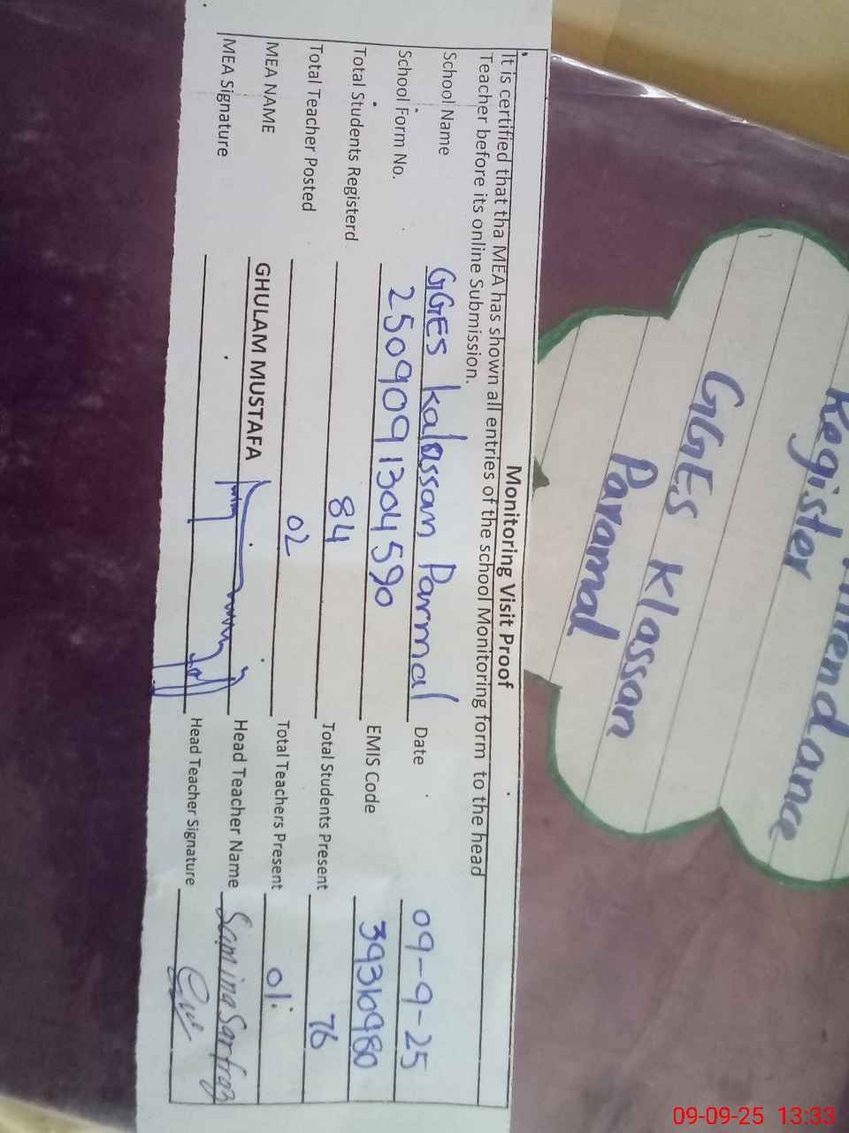 | EMIS Code: 39310980 | Name of School: GGES KALASSAN PARAMAL | |||
