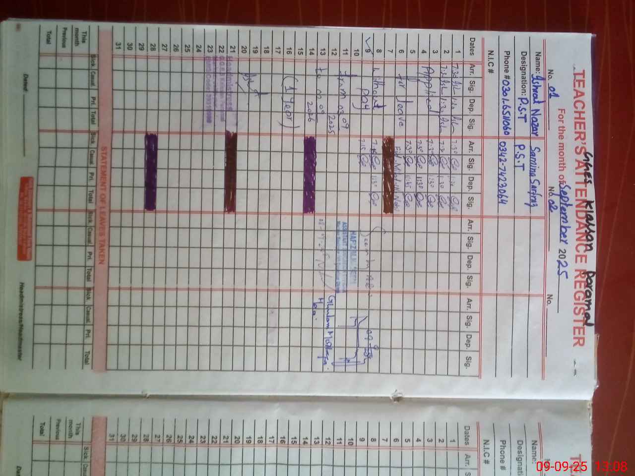 | Total no. of Classrooms: 4 No. of Classrooms Used for Teaching: 4 No. of Classrooms Storing Old Furniture, FTBs, etc: 0Comments if Any: Nominal roll for online attendance found contrary to current available students records Head Teacher told that all enrolled students provided with free text books accordingly |