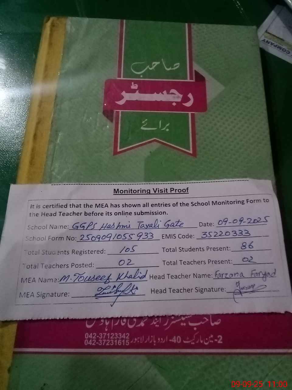| EMIS Code: 35220333 | Name of School: GGPS HASHMI TAXALI GATE | |||