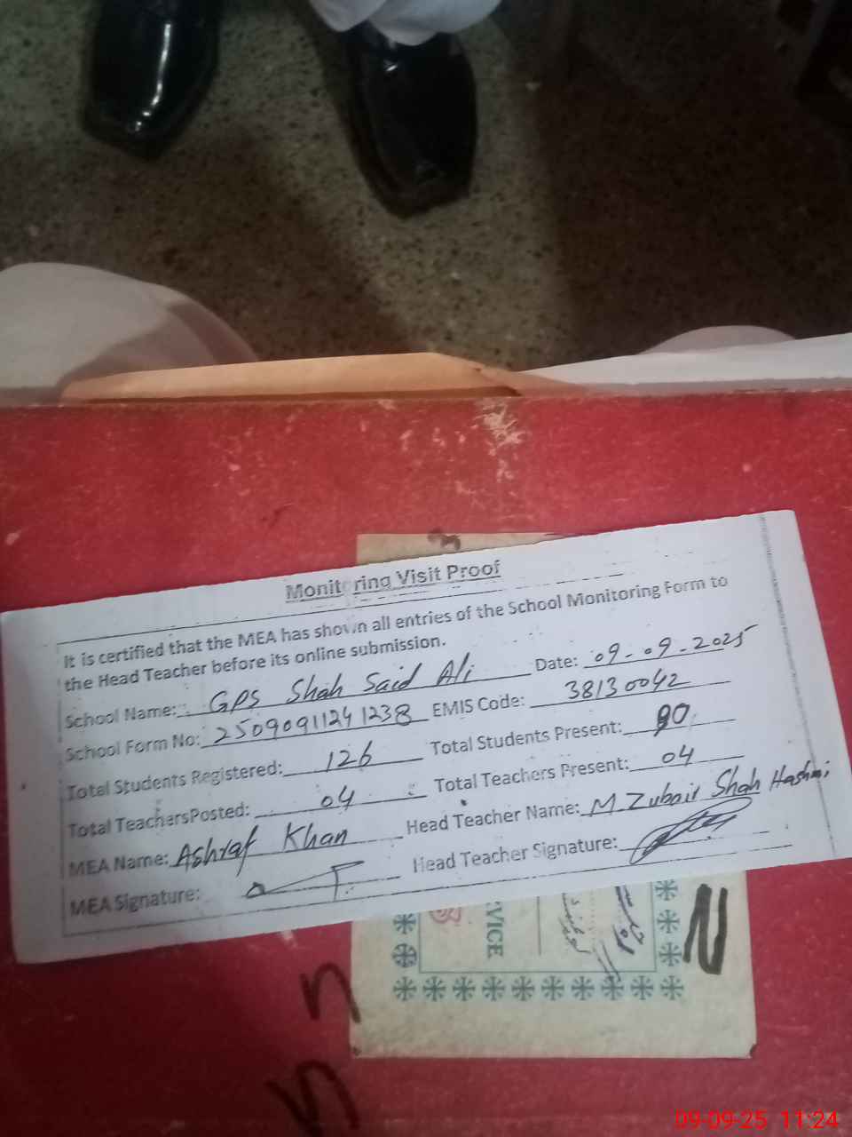 | EMIS Code: 38130042 | Name of School: GPS SHAH SAID ALI | |||