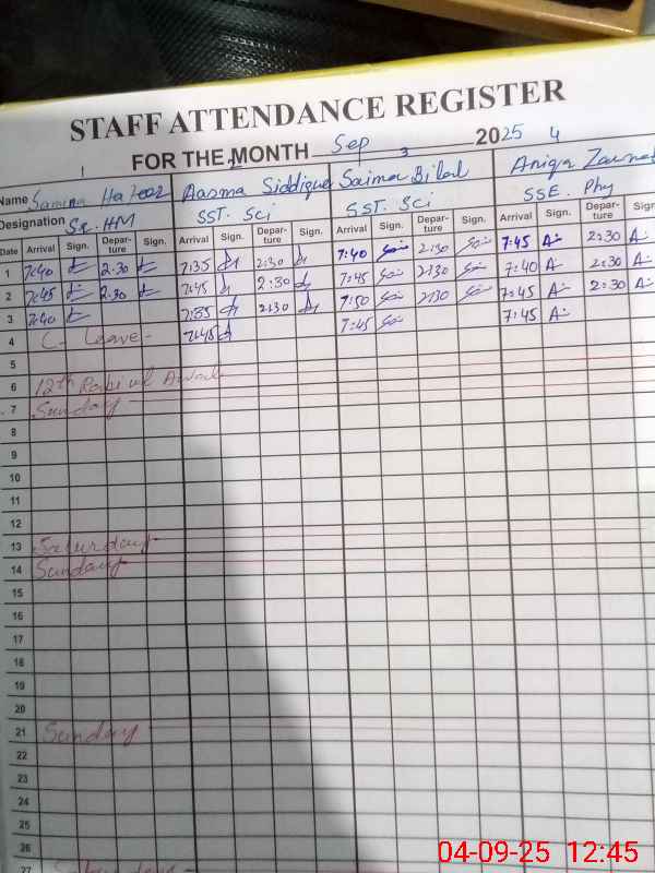 | 35**** | Sa**** Ha**** | Sr. Headmaster | Regular | 0 | 0 | 0 | 0 | 0 | 0 | 0 | 0 | 0 | Casual |