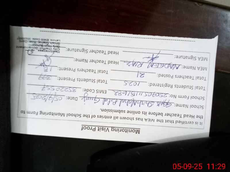 | EMIS Code: 35220557 | Name of School: GGHS SHISH MEHAL BILAL GUNJ (EX-MCL) | |||
