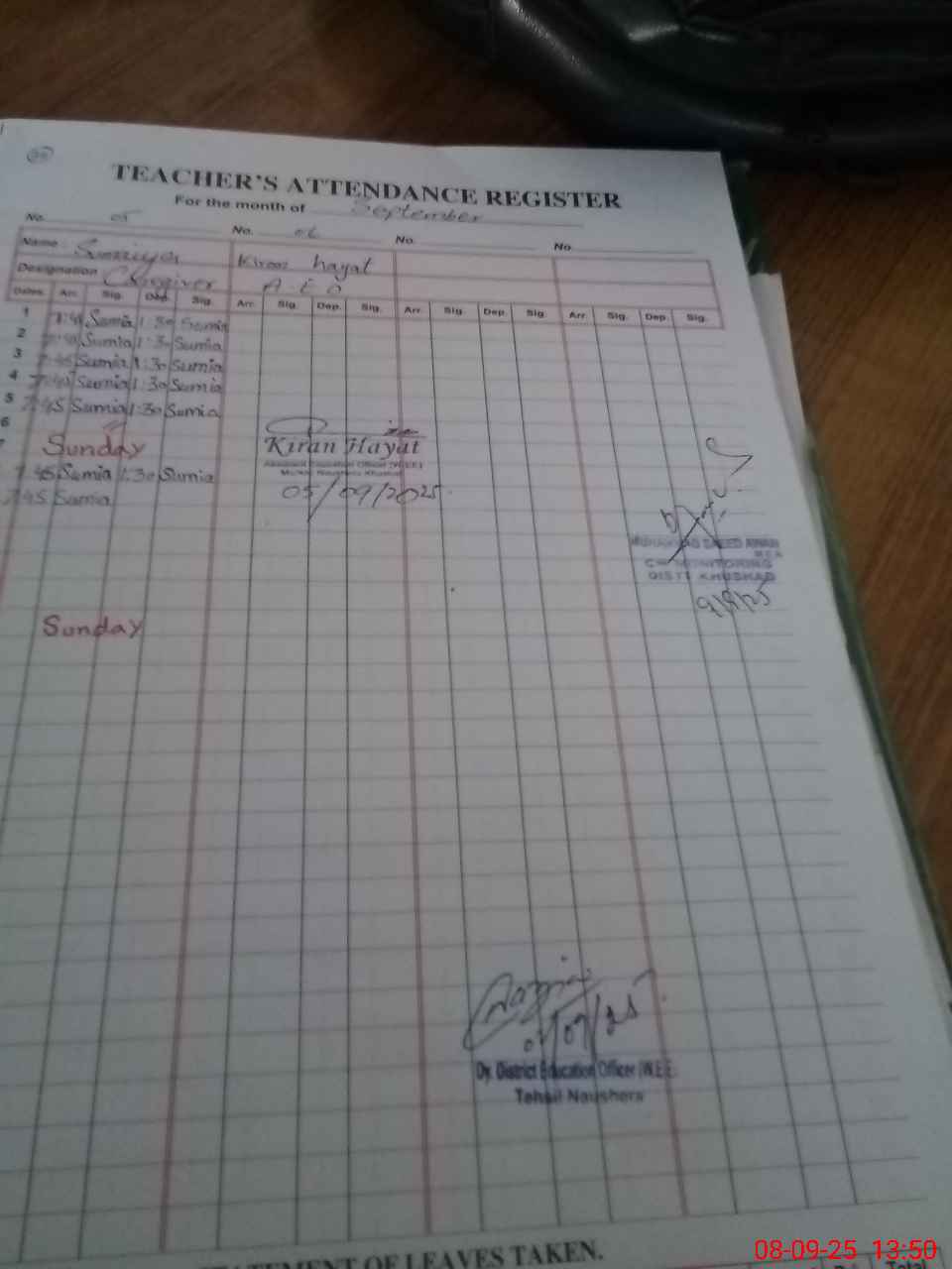 | Name: IR**** AH**** Designation: (School Headmaster's/Headmistress's) PST Phone/Cell Number: 03**** |