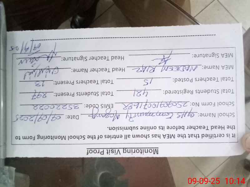 | Certified that this School was Inspected by the Undersigned MEA/DMO Today and the Information Stated Above is as Per Record. | |||||