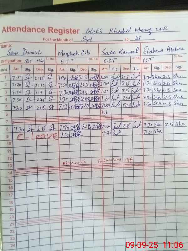 | Name: SA**** DA**** Designation: (School Headmaster's/Headmistress's) Head Mistress SST Phone/Cell Number: 03**** |