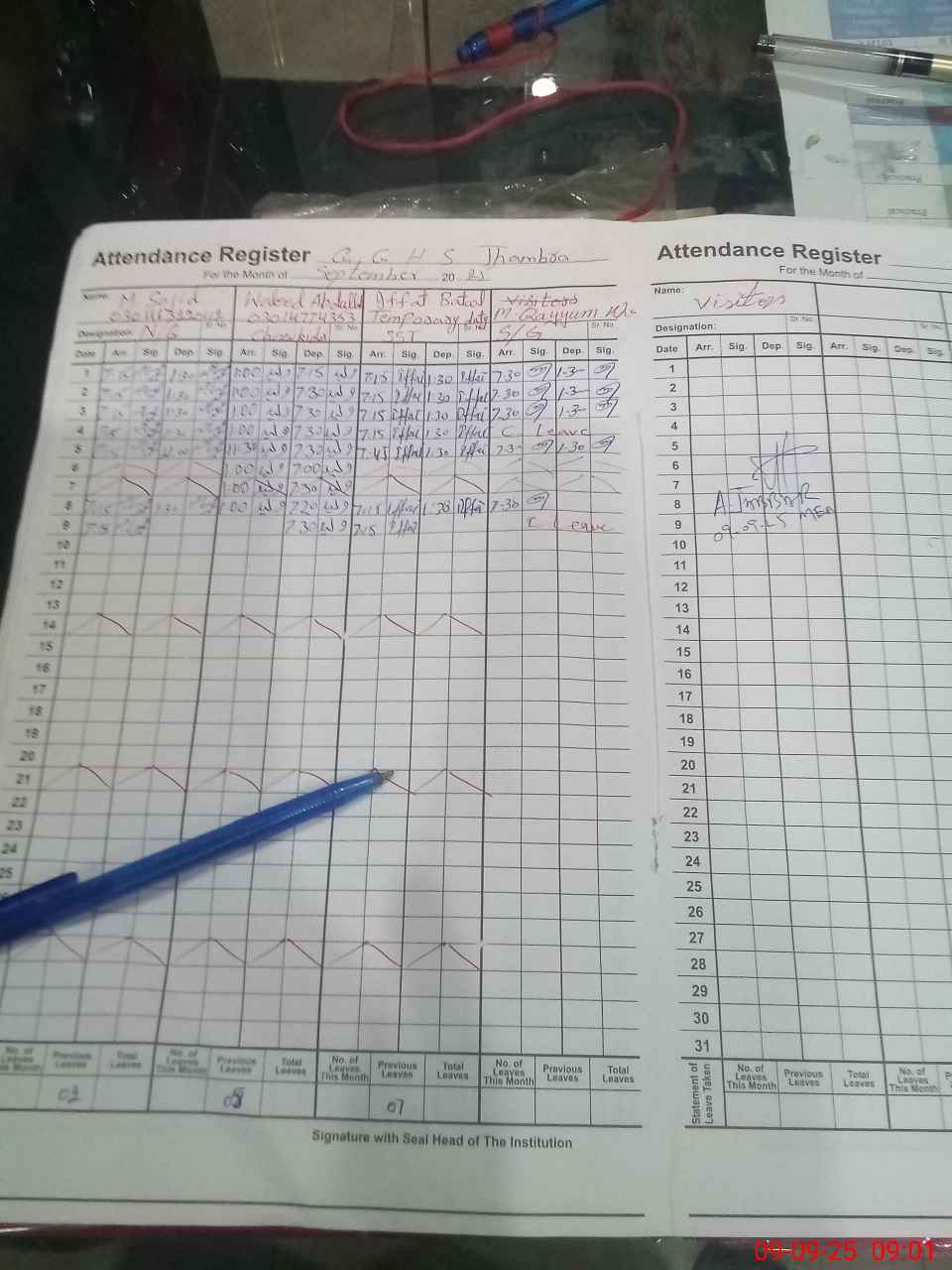 | Attendance Register | Head Teacher | MEA with School | Visit Proof |
