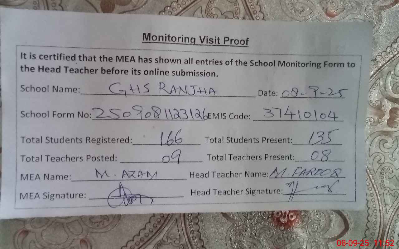 | EMIS Code: 37410104 | Name of School: GHS RANJHA | |||