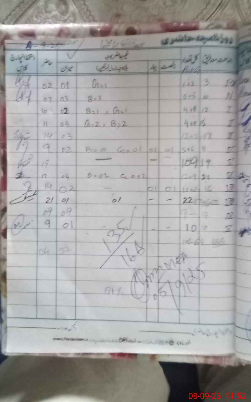 | 37**** | Mu**** Kh**** | Regular | 1 | 0 | 0 | 0 | 0 | 0 | 0 | 0 | 1 | Absent (Un-Authorized) | |