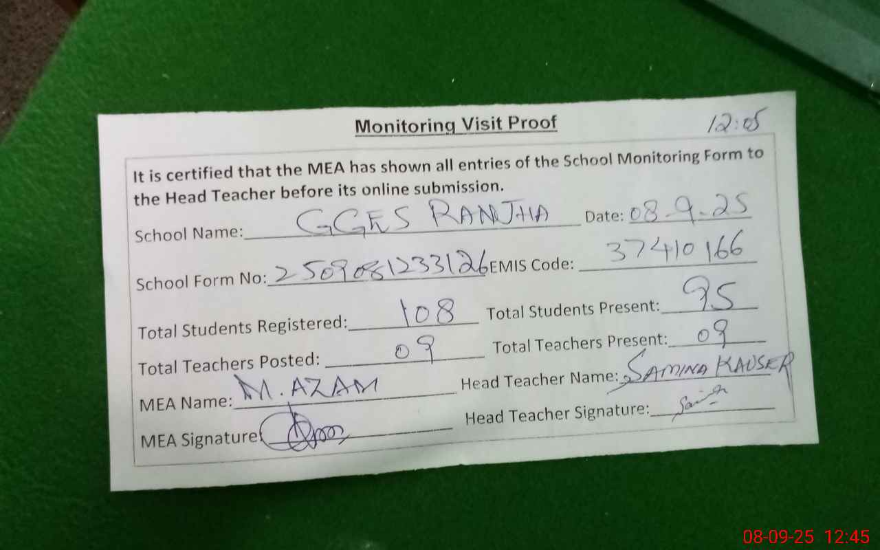 | EMIS Code: 37410166 | Name of School: GGES RANJHA | |||