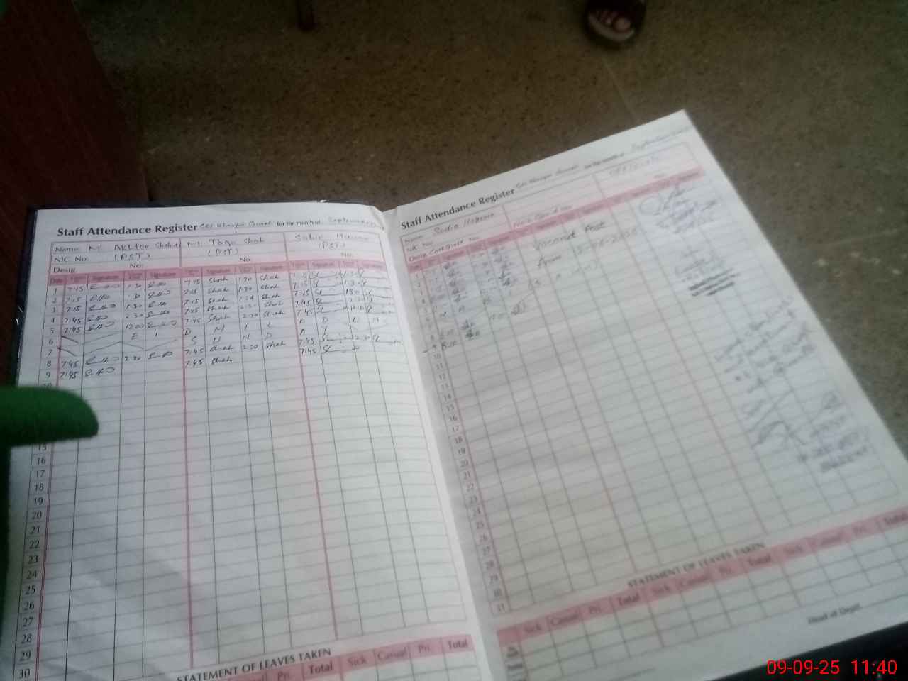 | Leave | Duty | Absent | Maternity | Medical | Ex- Pak |