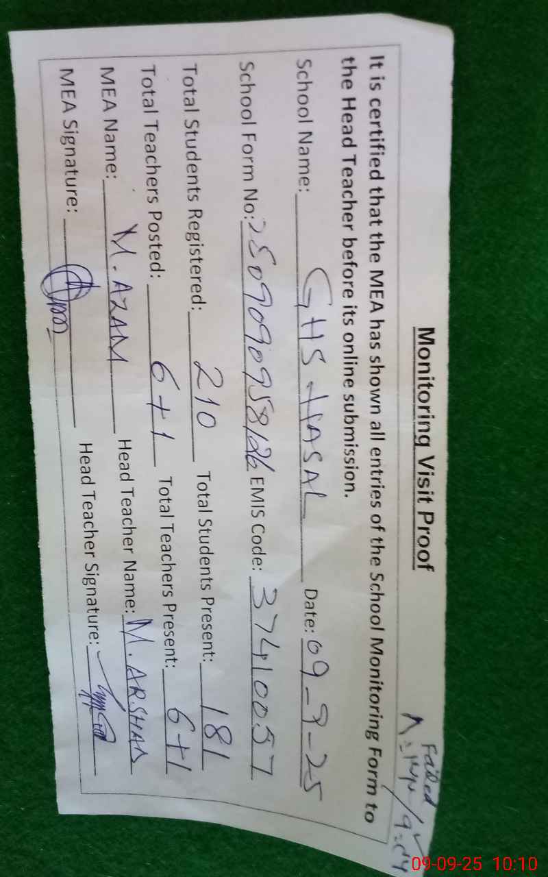 | EMIS Code: 37410057 | Name of School: GHS HASAL | |||