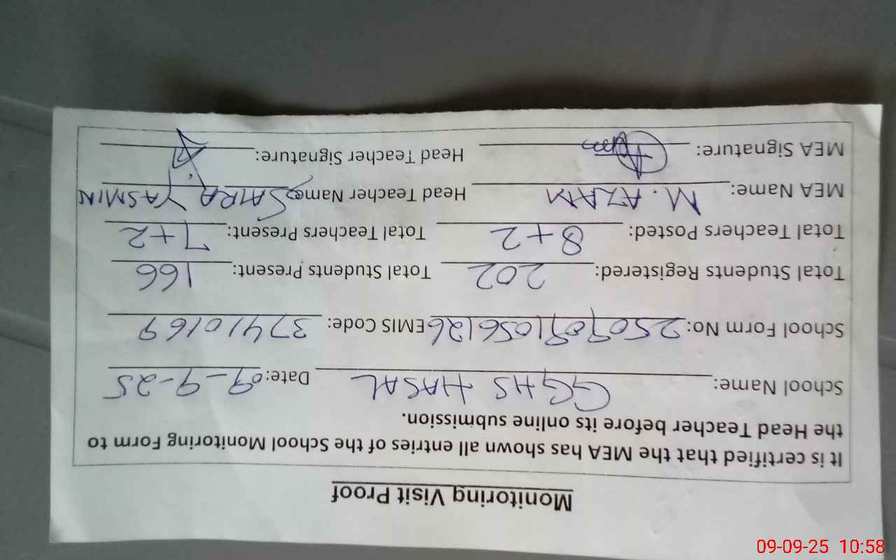| EMIS Code: 37410169 | Name of School: GGHS HASAL | |||