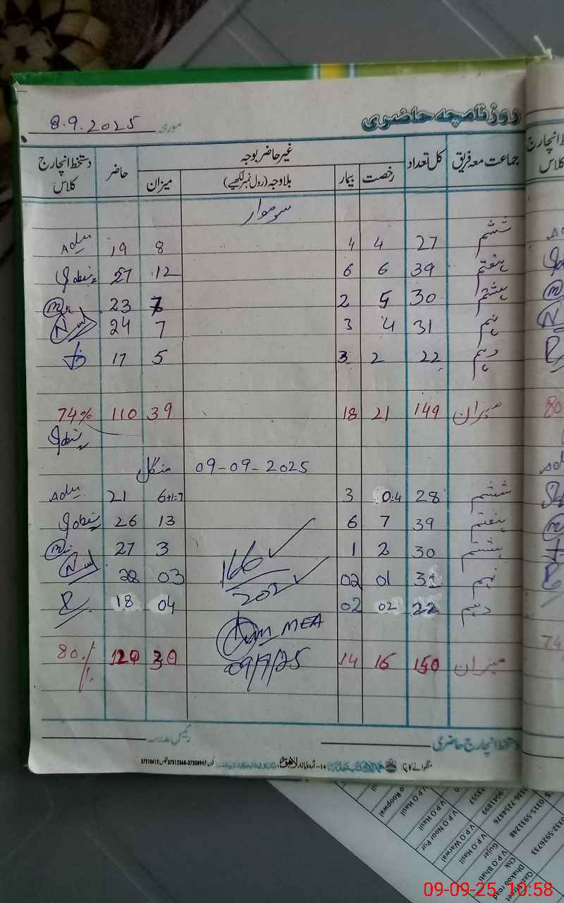 | Attendance Register | Head Teacher | MEA with School | Visit Proof |