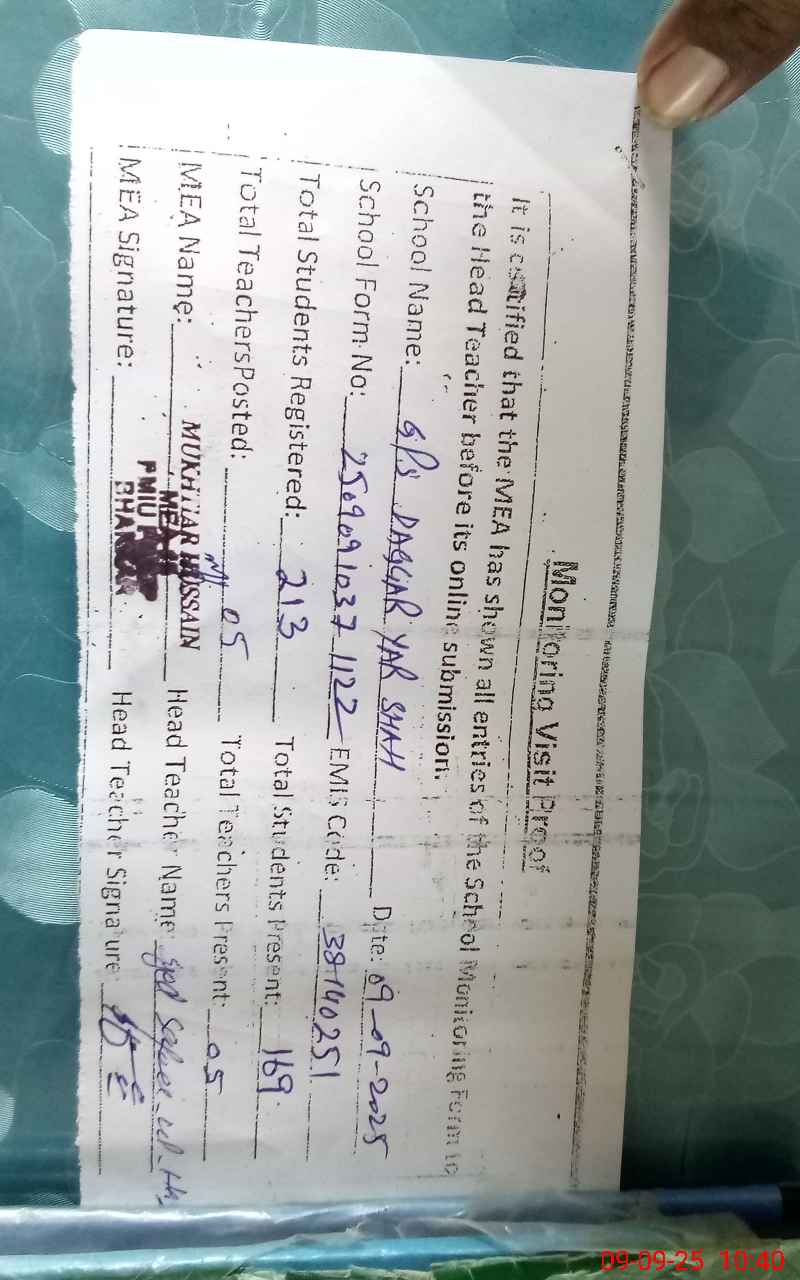 | EMIS Code: 38140251 | Name of School: GPS DAGGAR YAR SHAH | |||