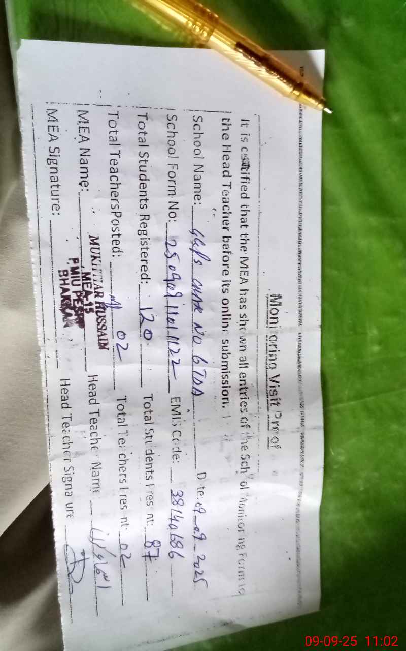 | Attendance Register | Head Teacher | MEA with School | Visit Proof |