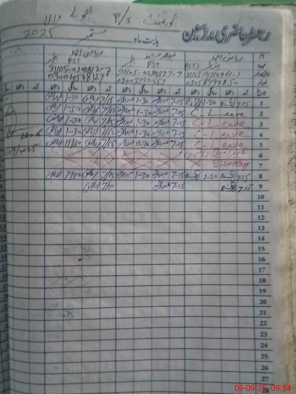 | CNIC | Full Name | Designation | R/C | Absence during last cal. month |