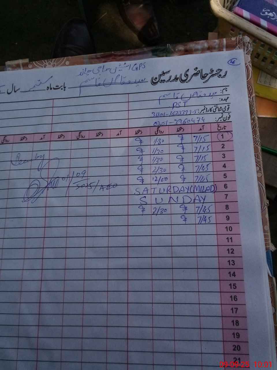 | Name: HA**** MYA**** Designation: (School Headmaster's/Headmistress's) PST Phone/Cell Number: 03**** |