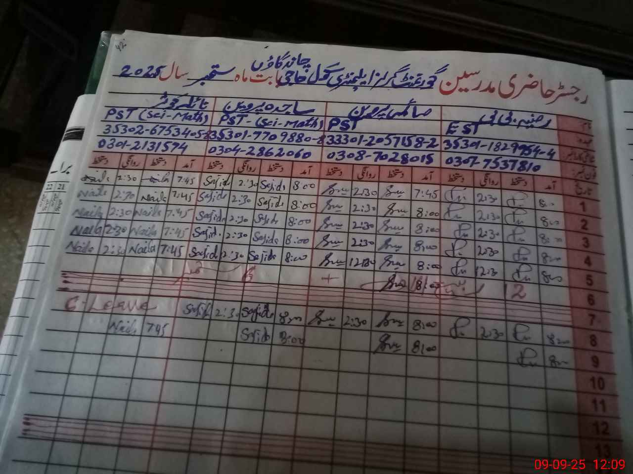| Name: RA**** BI**** Designation: (School Headmaster's/Headmistress's) EST G Phone/Cell Number: 03**** |