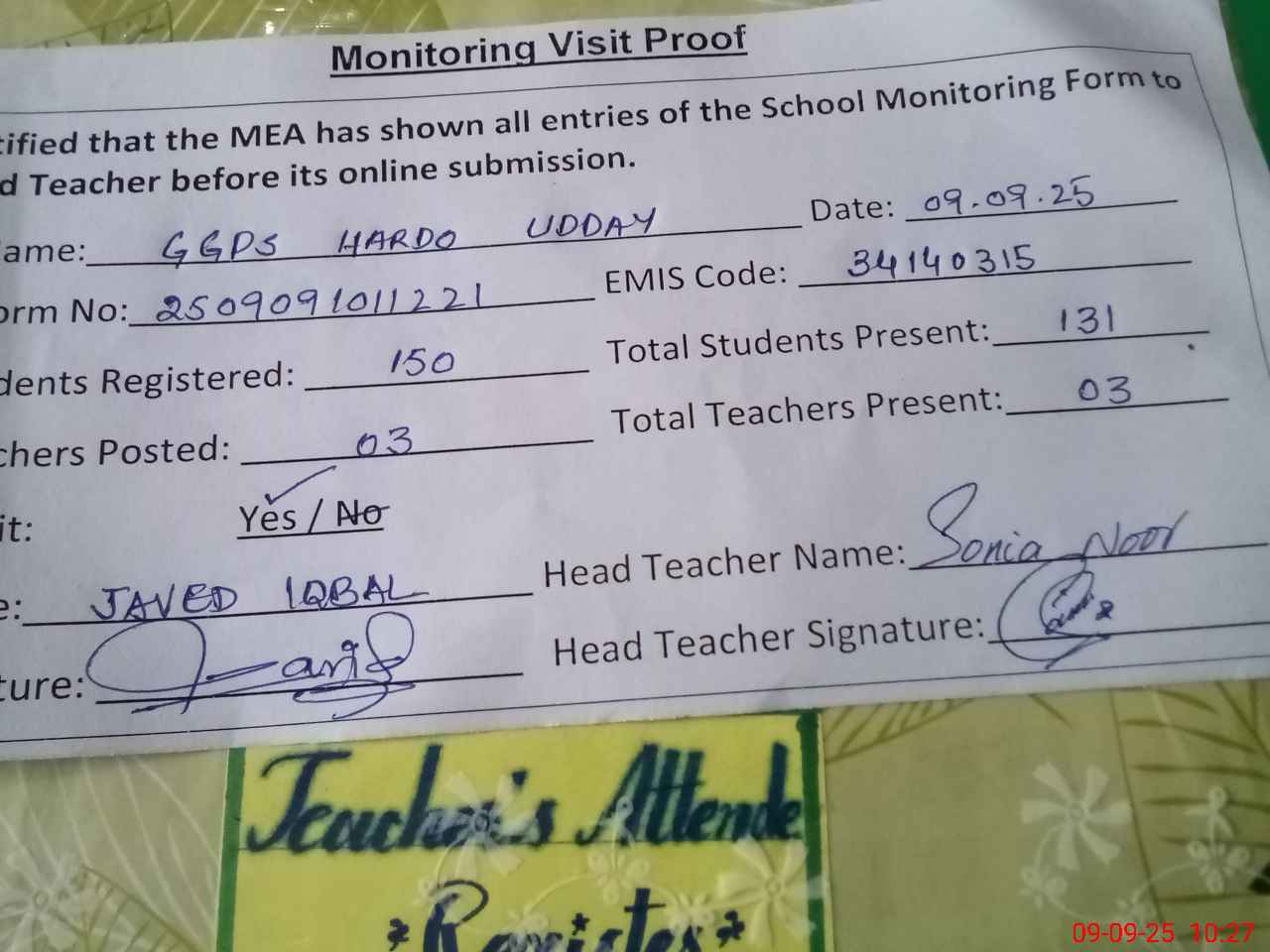 | EMIS Code: 34140315 | Name of School: GGPS HARDO UDDAY | |||