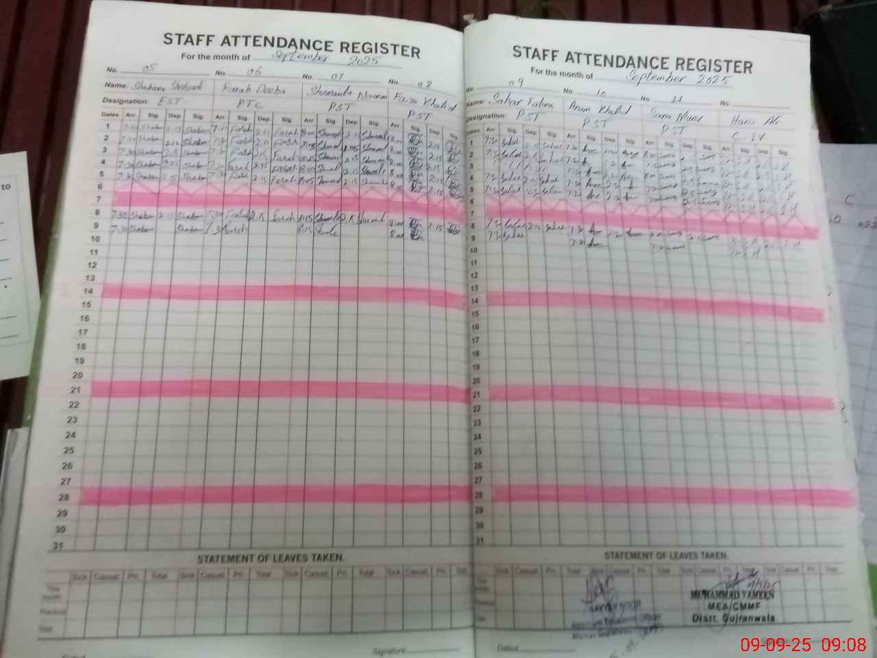 | CNIC | Full Name | Designation | R/C | Absence During Last Calender Month |