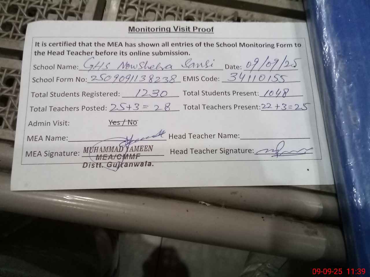 | EMIS Code: 34110155 | Name of School: GHS NOWSHERA SANSI | |||