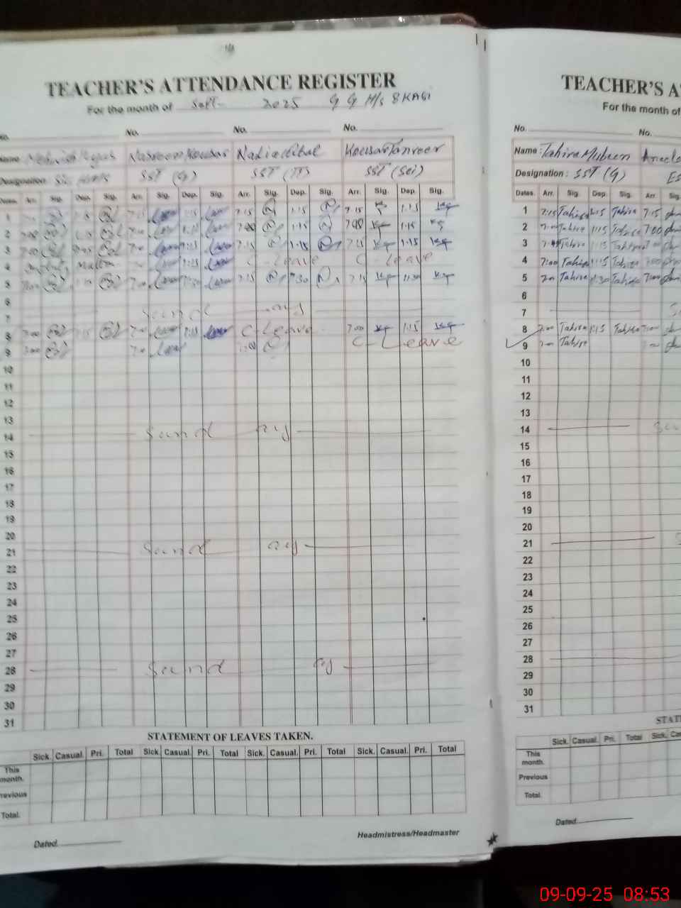 | Leave | Duty | Absent | Maternity | Medical | Ex- Pak |
