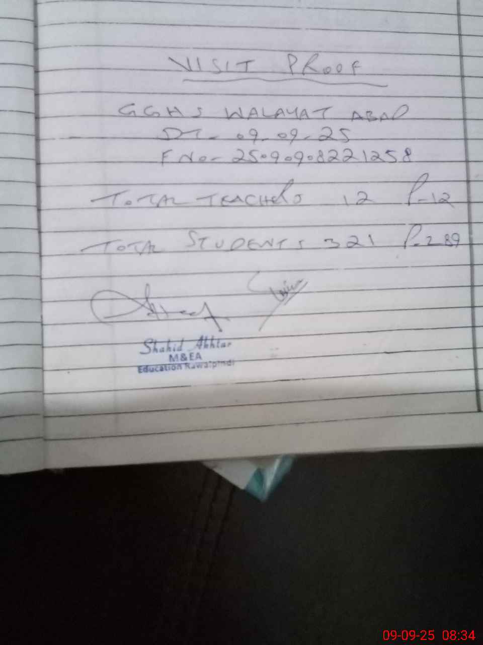 | Attendance Register | Head Teacher | MEA with School | Visit Proof |