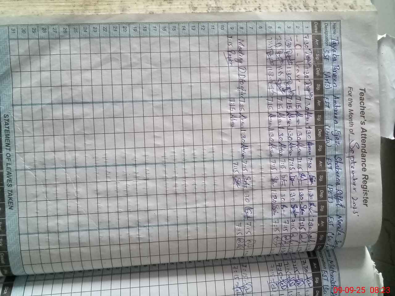 | Monitoring Date: 09-09-2025 | Start Time: 09-09-2025 08:07 AM | End Time: 09-09-2025 08:34 AM | Name of MEA: SH**** AK**** | |
