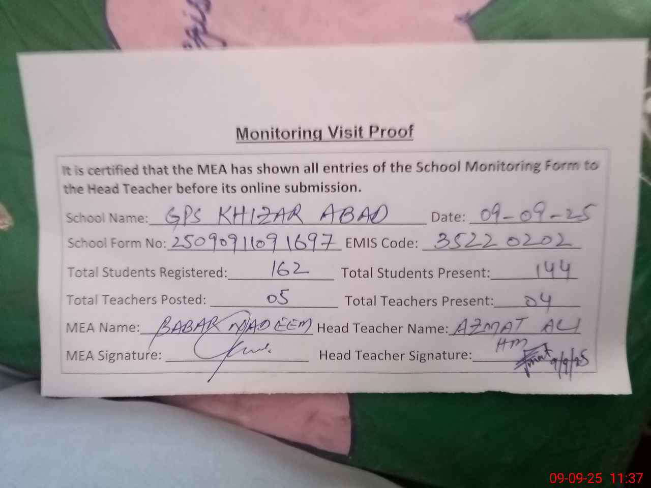 | EMIS Code: 35220202 | Name of School: GPS KHIZAR ABAD | |||