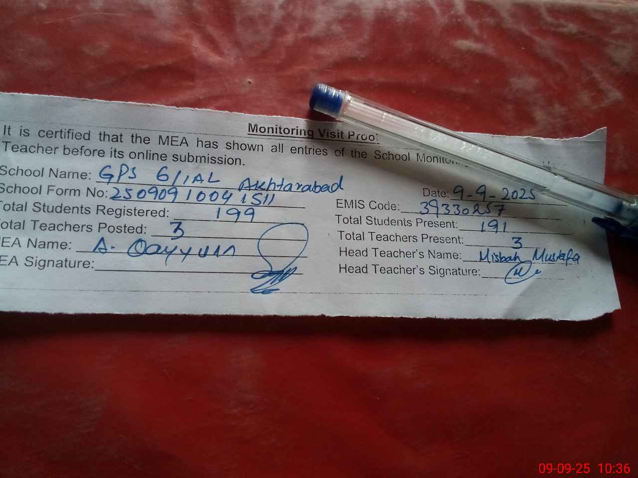 | EMIS Code: 39330257 | Name of School: GPS CHAK 6/1-AL AKHTAR ABAD | |||