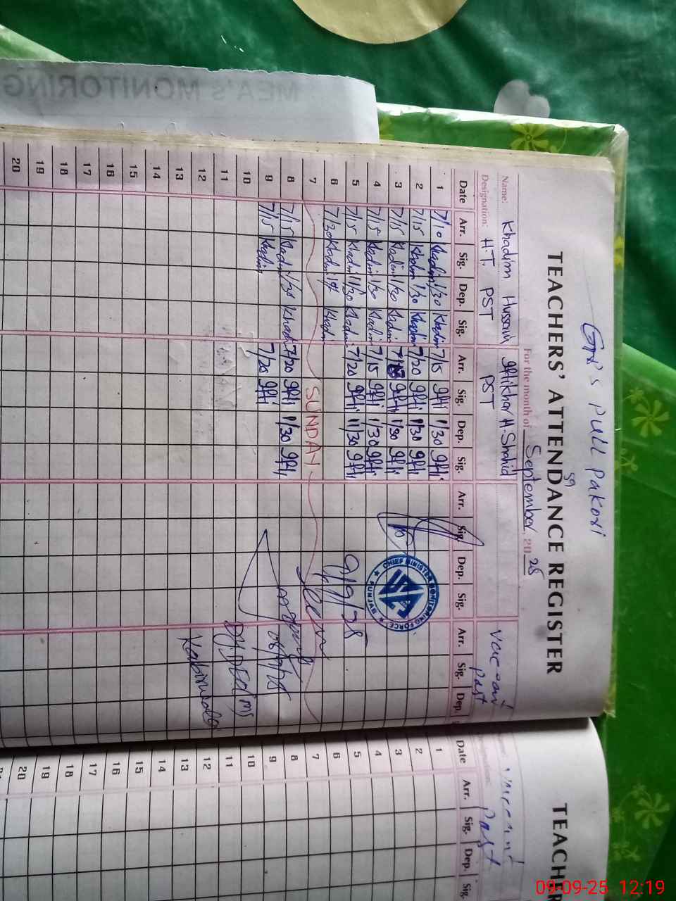 | Name: Kh**** Hu**** Designation: (School Headmaster's/Headmistress's) Pst Phone/Cell Number: 03**** |