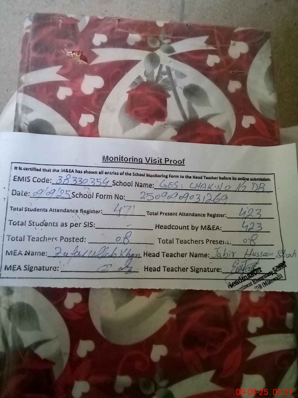| EMIS Code: 38330354 | Name of School: GES CHAK NO.16 DB P/O 15 DB MIANWALI | |||