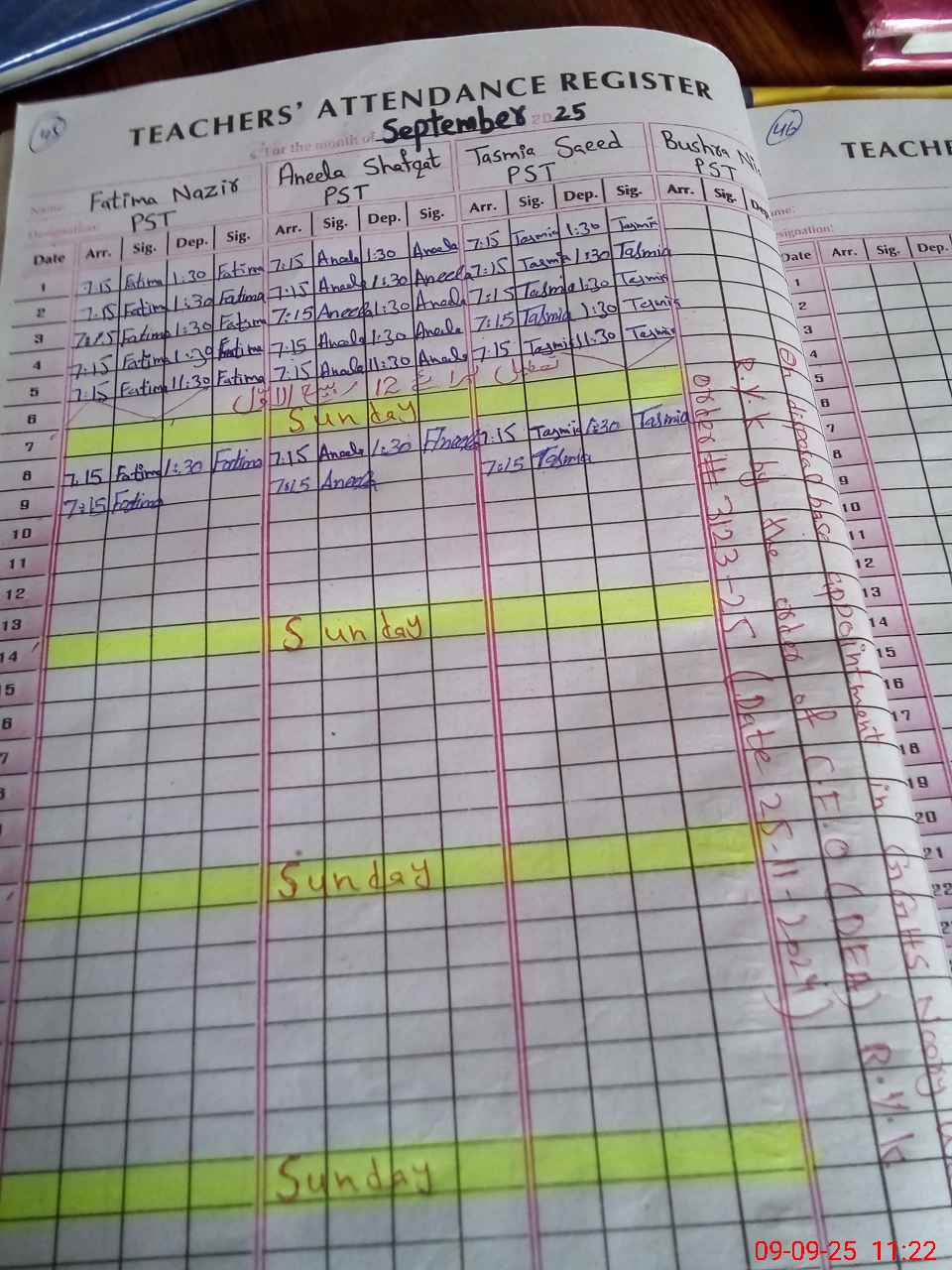 | Remarks (Use Separate Page if Required): NSB record not found Cash book not maintained Boundary wall repair needed 01 teacher Bushra temporary bound since 25 November 2024 Marked as absent | |||||