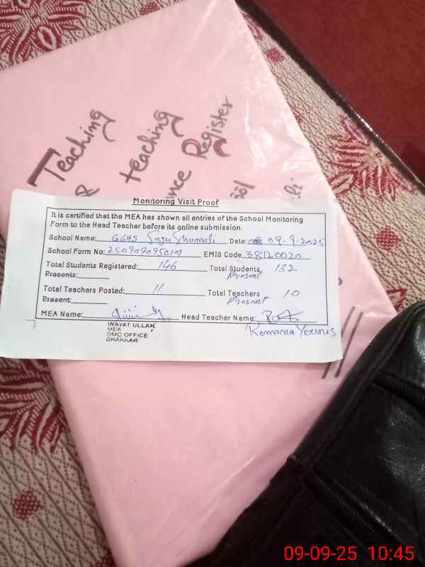 | EMIS Code: 38120020 | Name of School: GGHS SAGGU SHUMALI | |||