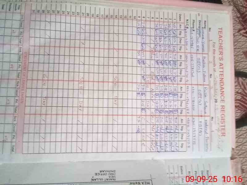 | Name: Ro**** Yo**** Designation: (School Headmaster's/Headmistress's) S.S.T.(I Cec) Phone/Cell Number: 03**** |