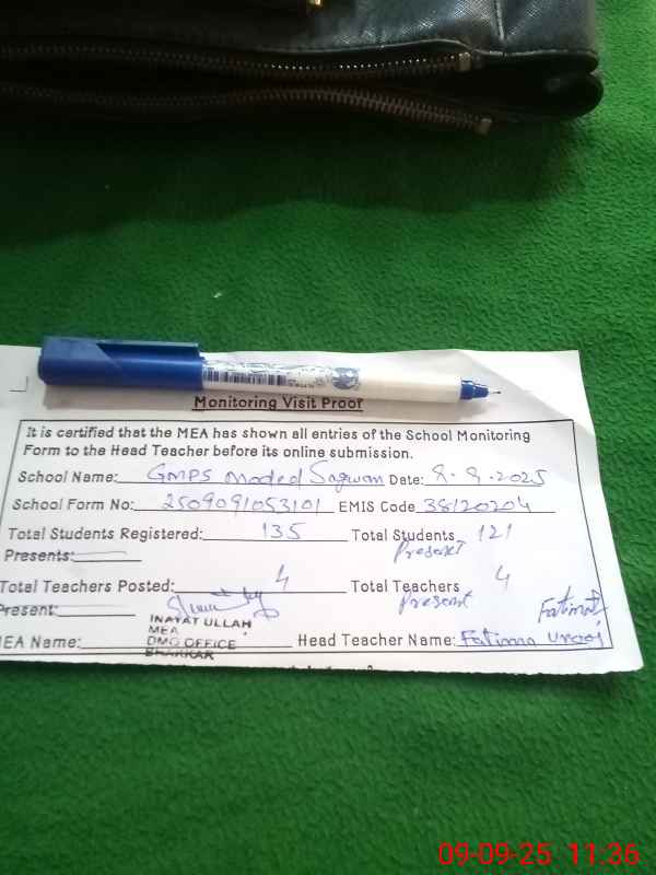 | EMIS Code: 38120204 | Name of School: GMPS MODEL SAGWAN | |||
