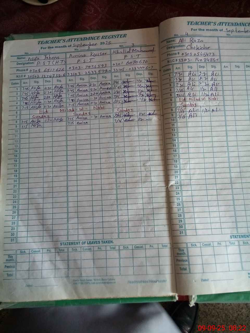 | Name: AS**** JA**** Designation: (School Headmaster's/Headmistress's) PST Phone/Cell Number: 03**** |