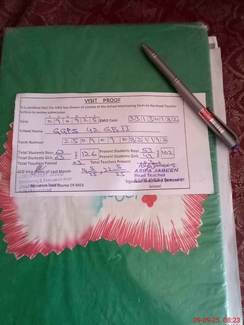 | EMIS Code: 33130182 | Name of School: GGPS CHAK 42 GB II SAMUNDRI | |||