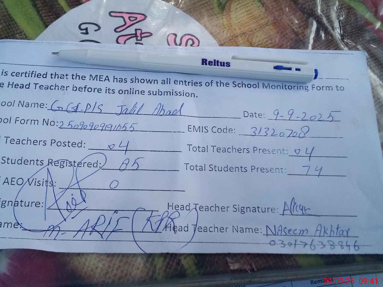 | EMIS Code: 31320708 | Name of School: GGPS JALIL ABAD | |||
