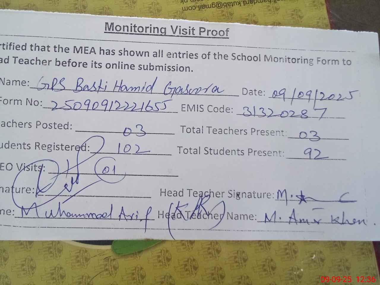 | EMIS Code: 31320287 | Name of School: GPS BASTI HAMID GASOORA | |||