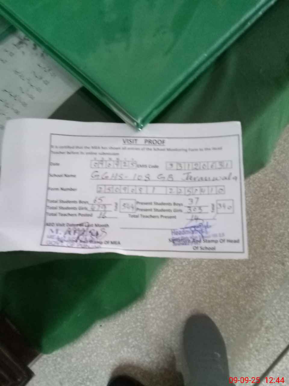 | Certified that this School was Inspected by the Undersigned MEA/DMO Today and the Information Stated Above is as Per Record. | |||||