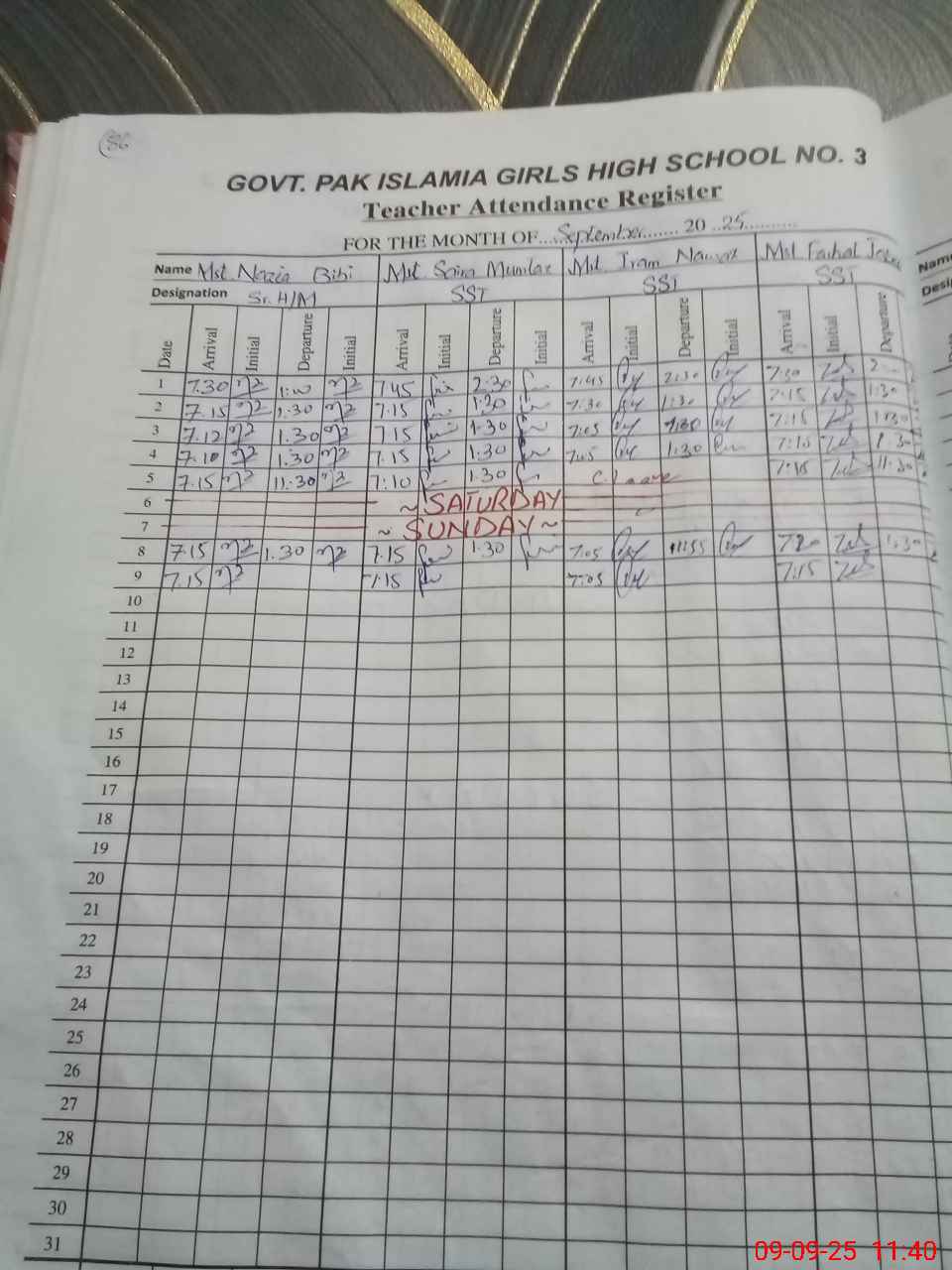 | Monitoring Date: 09-09-2025 | Start Time: 09-09-2025 11:07 AM | End Time: 09-09-2025 11:52 AM | Name of MEA: Ta**** Na**** | |