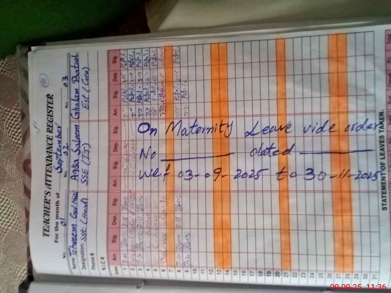 | 38**** | Aq**** Sa**** | SSE | Contract | 0 | 0 | 0 | 0 | 0 | 0 | 0 | 0 | 0 | Maternity |