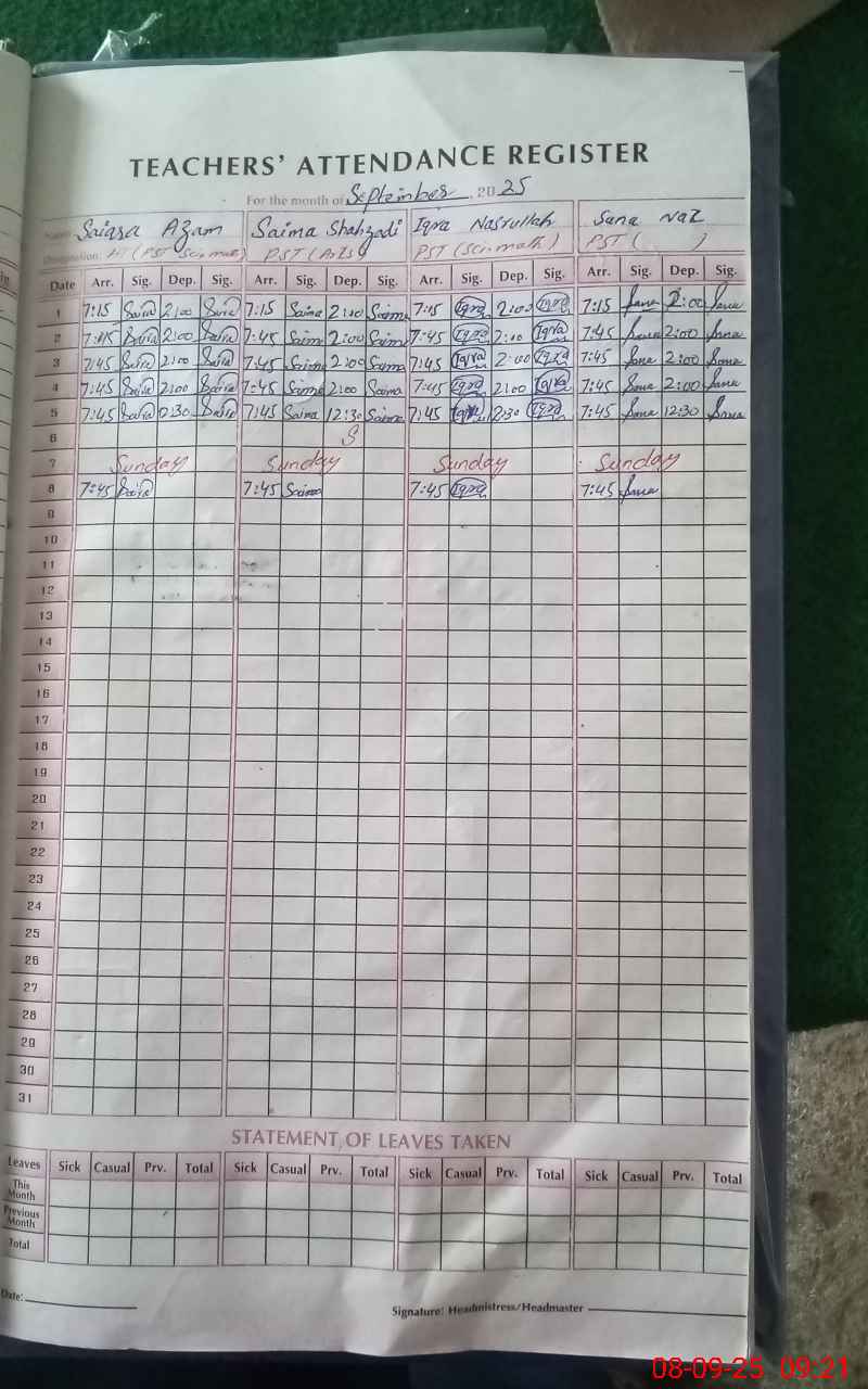 | Name: SA**** AZ**** Designation: (School Headmaster's/Headmistress's) PST Phone/Cell Number: 03**** |