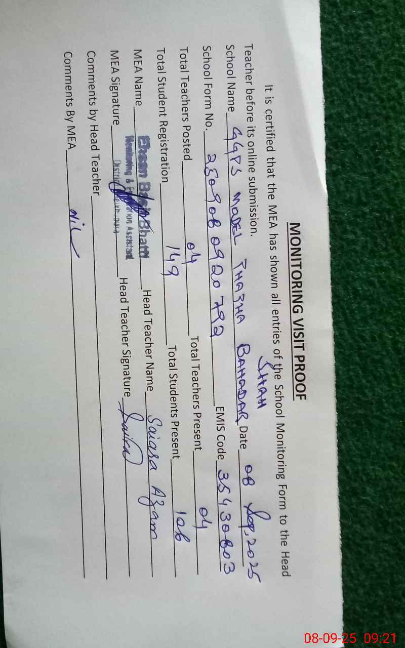 | EMIS Code: 35430803 | Name of School: GGPS MODEL THATHA BAHADAR SHAH | |||