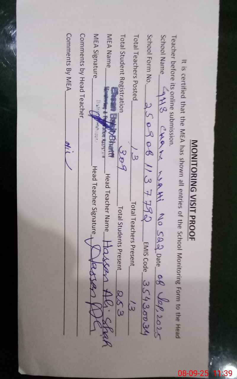 | EMIS Code: 35430034 | Name of School: GHS CHAK WAHI NO. 522 | |||