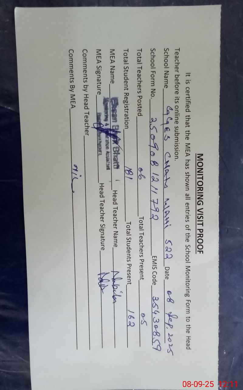 | EMIS Code: 35430859 | Name of School: GGES CHAK WAHI 522 | |||