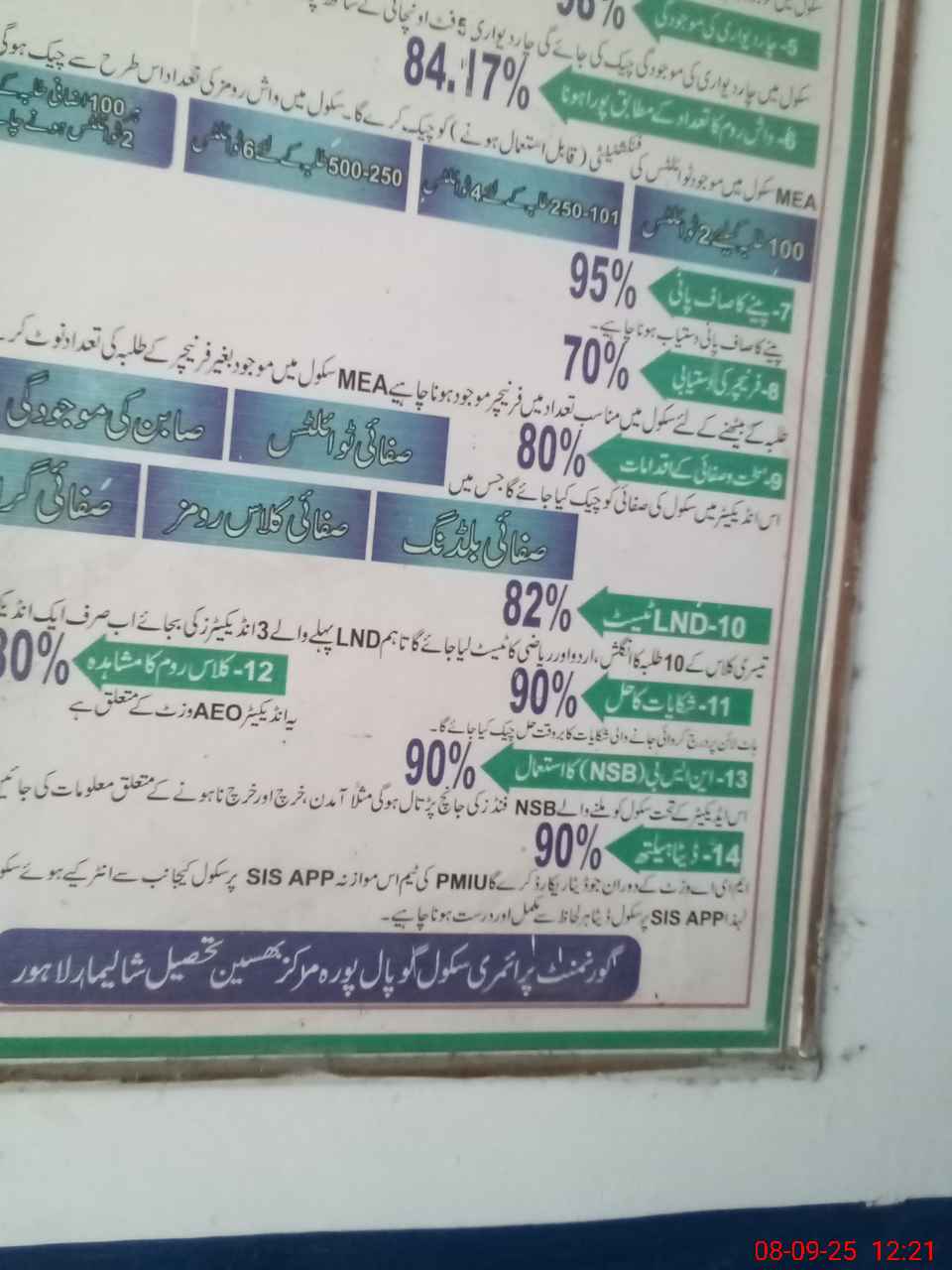 | District: LAHORE | Tehsil: SHALIMAR | Markaz: BHASEEN - MALE | Level: Primary | |
