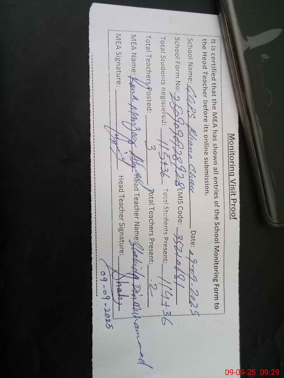 | EMIS Code: 35210681 | Name of School: GGPS BHANO CHAK | |||